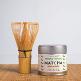 Está compuesto por nuestro matcha ceremonial (30 g), un té matcha orgánico japonés de la más alta calidad, sin amargor, y por nuestro batidor de bambú tradicional "chasen", un accesorio imprescindible para preparar matcha en cuestión de segundos. Este dúo es ideal para ti, como regalo, para una primera iniciación al matcha o para los amantes del té.